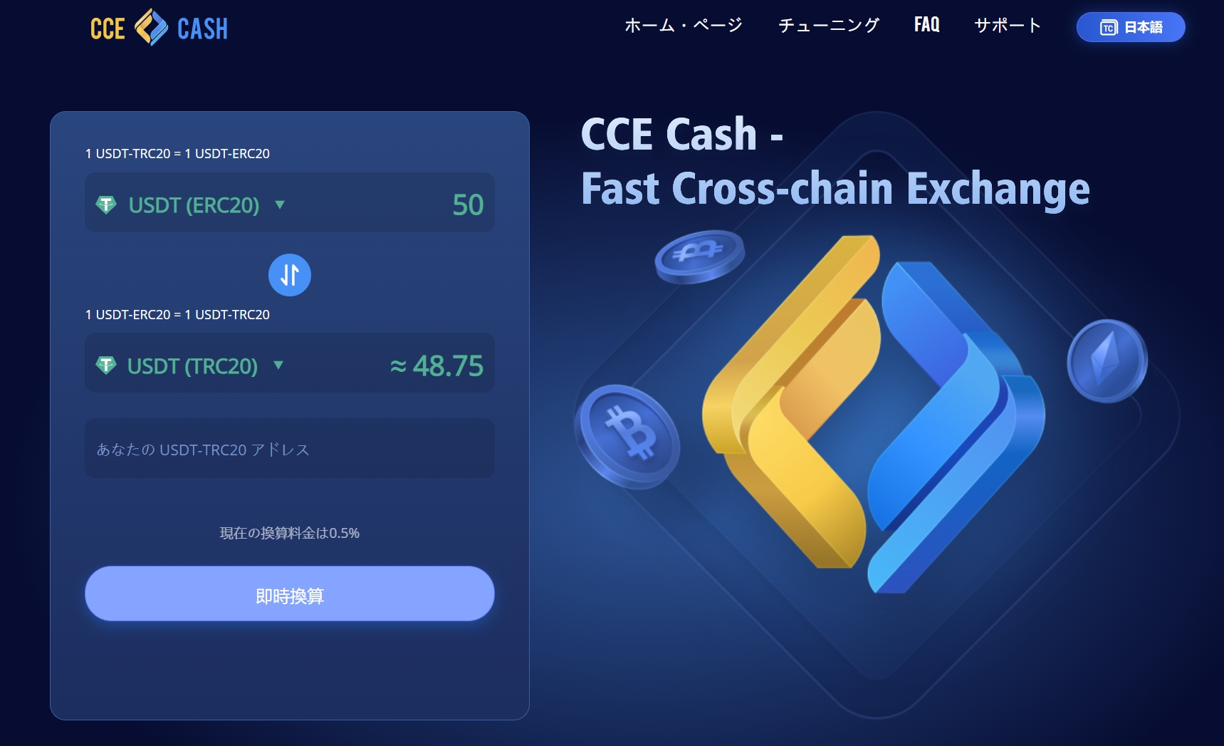 CCE Cash は、簡単で迅速なハイブリッド交換のために作成された管理外サービスです。私たちは最大の安全性、簡潔性、利便性を追求しています。私たちはあなたの資金を保存しませんし、任意のタイプのアカウントを作成する必要はありません。制限なし登録する必要も手間もかからず、光速よりも速いスピードで任意の数の現金に両替できます。